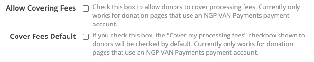 On pages using NGP VAN Payments in ActionKit, you can now give donors the option of covering processing fees for their donation:
