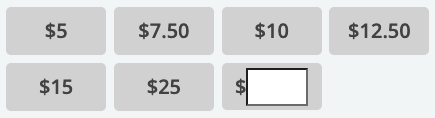 For example, the URL parameter amounts=5,7.50,10,12.50,15,25 will ignore whatever ask amounts are pre-set on your donation page and instead use the amounts 5, 7.50, 10, 12.50, 15, and 25.